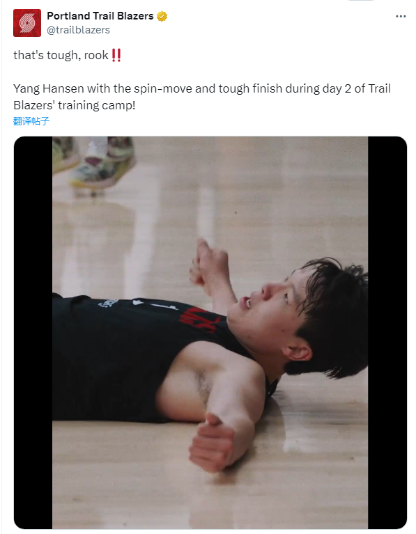 The Trail Blazers chính thức đăng video và viết: quá khó, một tân binh! Yang Hansen đã hoàn thành một hành động quay vòng vào ngày thứ hai của trại huấn luyện Trail Blazers và ghi điểm hết mình!