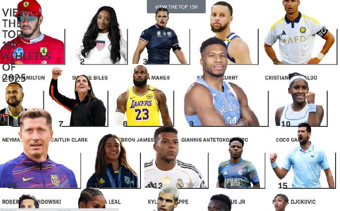 Trong số 10 người đứng đầu danh sách, vận động viên thể dục Simone Biles đứng thứ hai và vận động viên bóng bầu dục Ilona Maher đứng thứ ba.