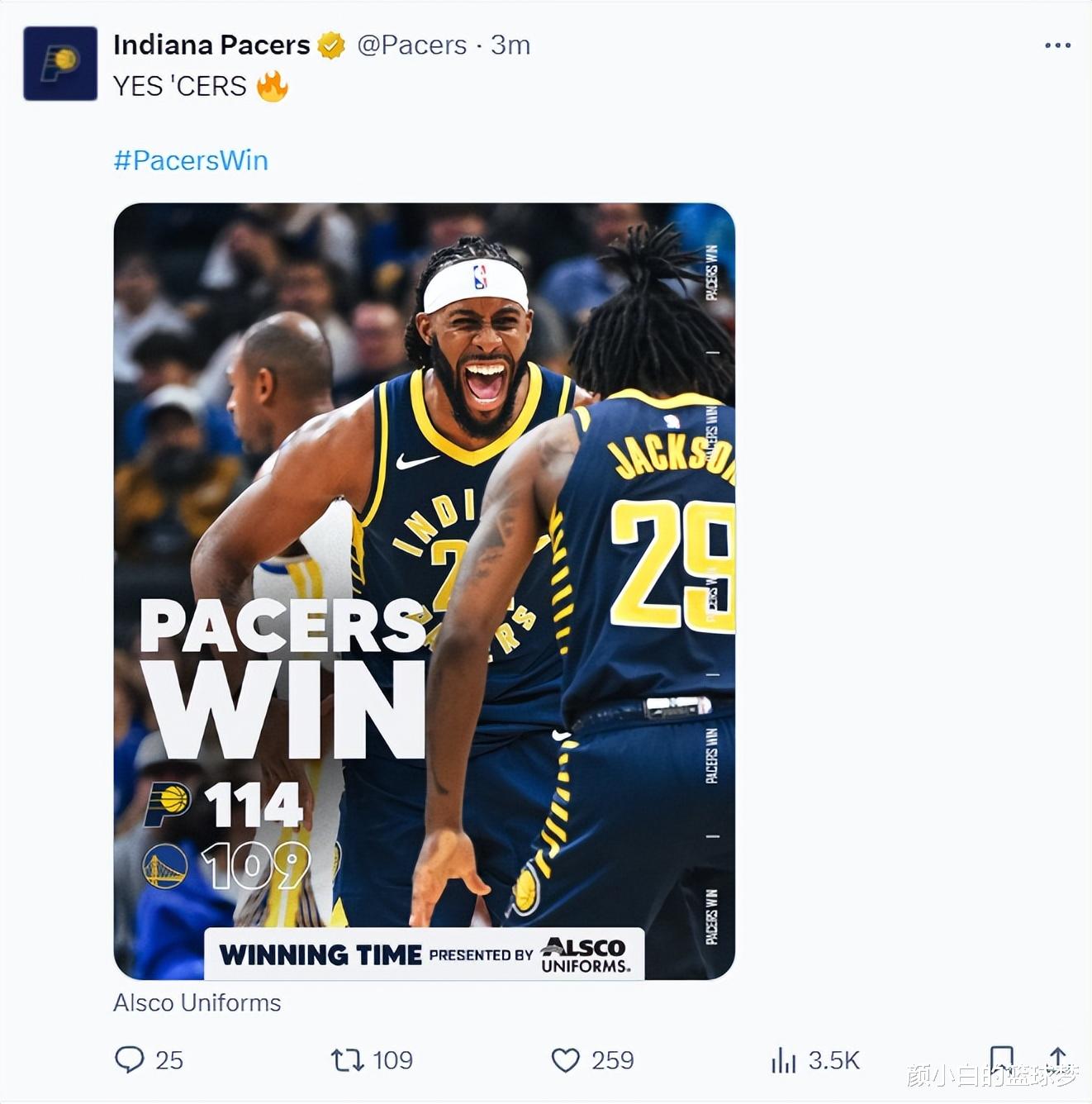 Vào ngày 2 tháng 11, Pacers đã lội ngược dòng trước Warriors với tỷ số 114-109 và giành chiến thắng đầu tiên trong mùa giải mới. Hiện tại họ có 1 trận thắng và 5 trận thua. Trong trò chơi này, Pacers đã dẫn trước Warriors tới 11 điểm, nhưng họ đã lội ngược dòng trong hiệp cuối cùng. Quentin Jackson, người nắm giữ hợp đồng hai chiều, đã trở thành anh hùng của toàn Indiana. Anh ấy đã ghi được 12 điểm với tỷ số 5 ăn 5 trong hiệp cuối cùng và đánh bại Stephen Curry.
